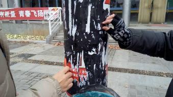 2014年12月11日上午,博彩网 14级给排水四班举办了清除校园小广告团日活动,全体同学不畏寒冬,积极参与,成果斐然。