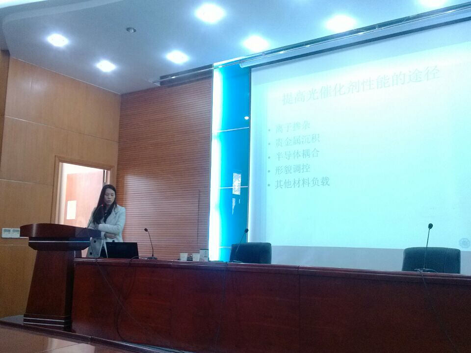 交流会在主持人张楠楠简短的介绍后就开始了。王晴、刘建超、曹暮寒和苗令占四位优秀博士分别从自己的研究方向出发,分别介绍了《典型有机污染物污染水体的修复》、《环境风险评估》、《石墨烯负载光催化材料的制备及其应用》;以及《人工纳米材料与生物膜之间的相互作用关系研究》四个目前水处理以及水环境领域热门研究方向,并对目前的一些研究进展进行了总结性的介绍,同时还分享了他们的科研思路、实验心得以及学习、生活的心路历程。