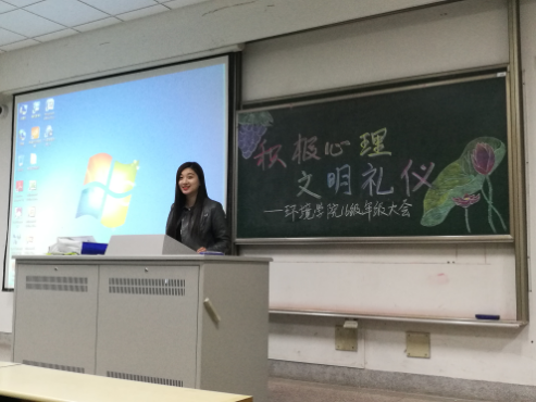 的学子送上了祝福,本次讲座也在同学们热烈的掌声中完美谢幕。相信在这场讲座中,每个同学都有自己的收获,也希望他们在接下来的一学期中能够超越自我,取得进步。 环境院新闻采编组 张帆 2017年4月6日