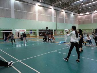4月14日下午,似火的春阳在昭示着夏日的来临。羽毛球场馆内,队员们挥舞着球拍,积极的准备着迎接羽毛球混双,男双与女双的比赛,洋溢的热情与外面的炎热相得益彰。