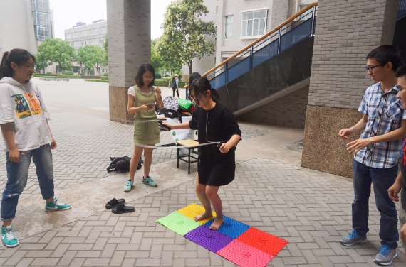 比赛项目分别为:多彩气球、指压板跳绳、传递水杯,大家热情高涨,到达活动场地后,各个小组开始有序进行比赛。多彩气球和指压板跳绳过程中进行环保知识竞赛,鼓励同学们多学习环保知识;水杯传递环节提醒大家珍惜每一滴水。