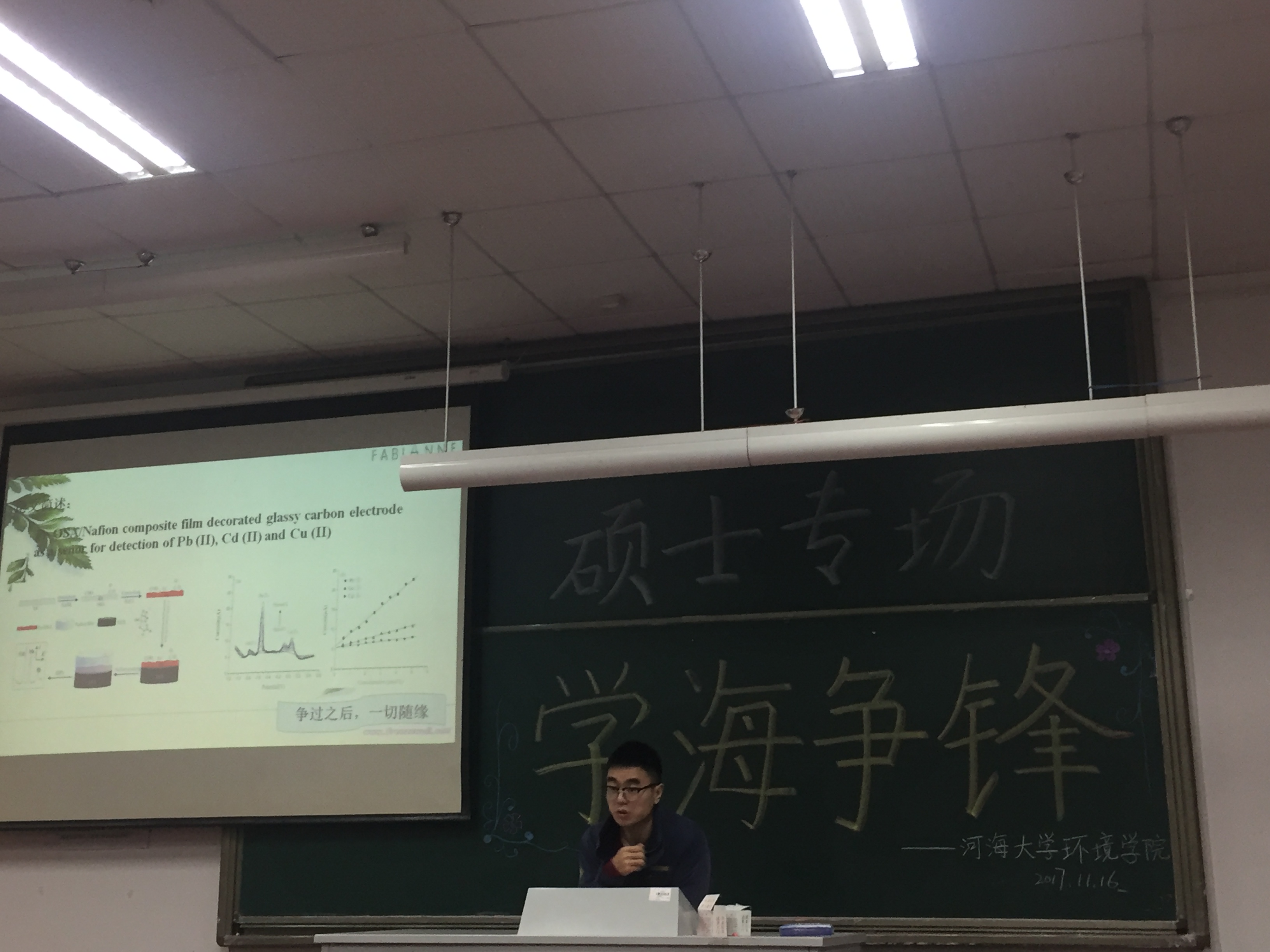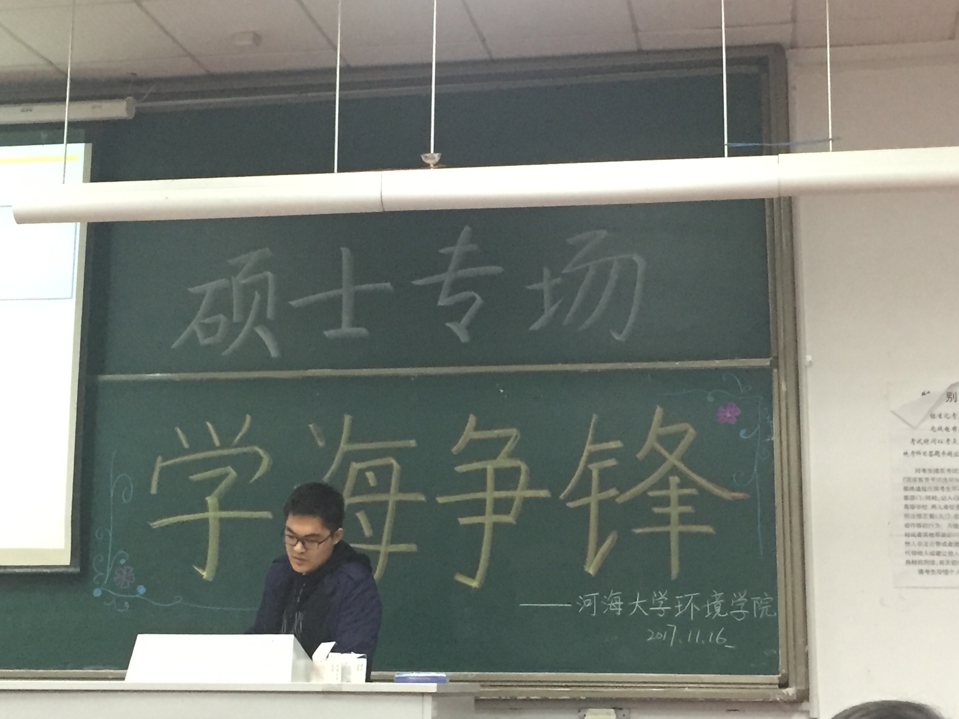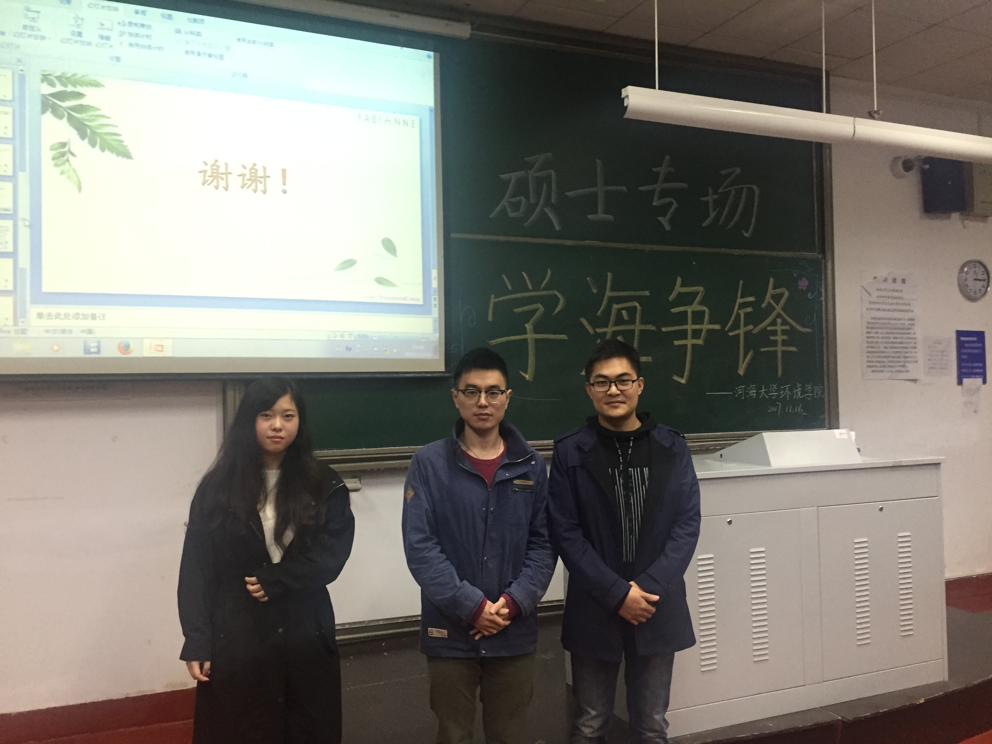 2017年11月16日下午,由博彩网 研会研科协策划并举办的“学海争锋——硕士专场”学术讲座于水利馆B101教室举行。本次讲座的三位主讲均是博彩网 优秀的研究生,都是今年国家奖学金的获得者,分别是16级市政工程专业的曹臻、15级市政工程的张佳男、15级环境科学与工程的沙海涛。