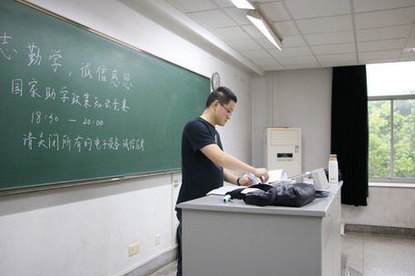 本次到场的嘉宾有16级商学院辅导员倪明杨老师,倪老师主持宣读完考试注意事项后,整场考试就在紧张激烈的氛围中开始了。