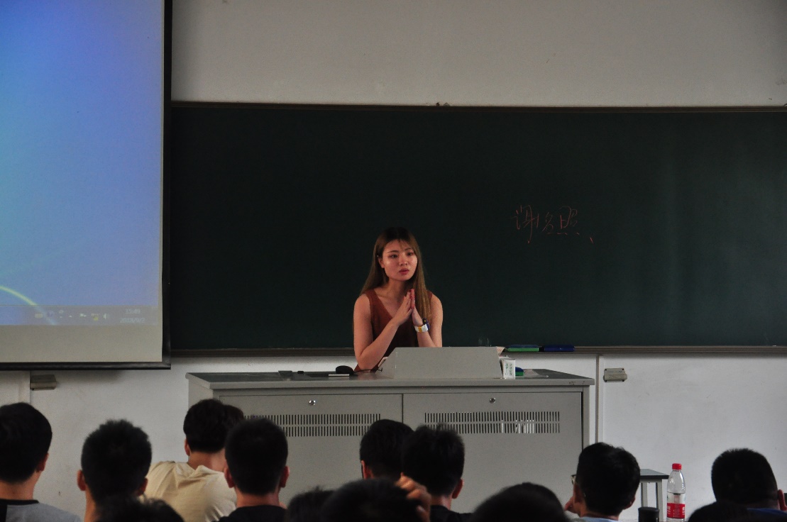 闫石磊学长主要着眼在安全问题上。通过几个实例,学长强调了新生需要有一定的警惕心,要学会向老师、学校寻求帮助。期间,学长还耐心回答了几个同学的疑问,幽默风趣的语言引得场内笑声连连。