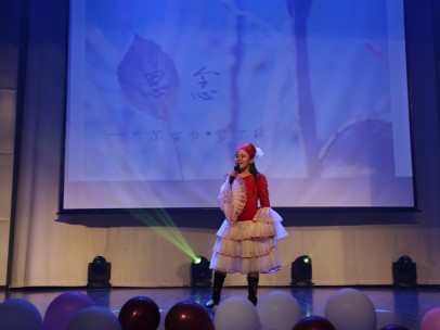 维吾尔族素以能歌善舞著称,来自新疆的米尔古力·努尔丽也为我们带来了载歌载舞的节目。轻扬的音乐响起,身着民族服装的米尔古力·努尔丽用她婉转清脆的声音将我们引去新疆,仿佛那美景就在眼前,美好,纯净。她的“思念”感染了在场的每一个人。