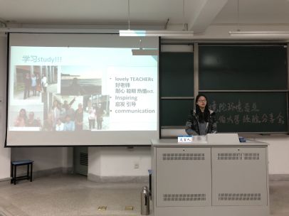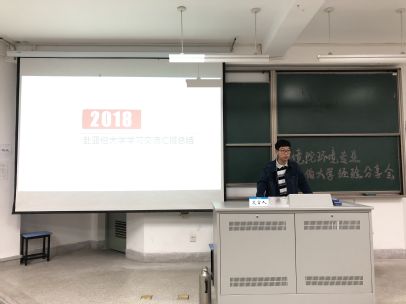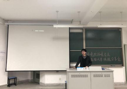 之后带来报告的是16级的潘哲祺同学。在分享心得之前,他先对环境专业的学习情况做了简要介绍。此次交流,他主要为同学们带来外教课的学习经验。在向大家分享了外教课的一些笔记整理后,潘哲祺同学还介绍了准备出国的相关事宜。