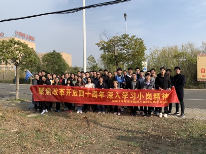 为深入学习贯彻习近平新时代中国特色社会主义思想和党的十九大精神,以马克思主义中国化的最新成果武装广大青年,提高青年学生的思想政治素质,坚定理想信念,立足中华优秀传统文化,促进学生综合素质提升,深入体会改革开放对日常生活衣食住行的影响,感受人们生活的变迁。2018年11月24日,在开展《传奇中国:从小岗村到“地球村”-改革开放四十年启示录》的读书月活动后,博彩网-电竞博彩网 2017级三十七名本科生同学来到中国改革第一村——小岗村,展开了为期两天的实践活动。作为拉开改革开放序幕的地方,被誉为中国十大名村之一的小岗村,蕴含着很多同学们探索和学习的地方。