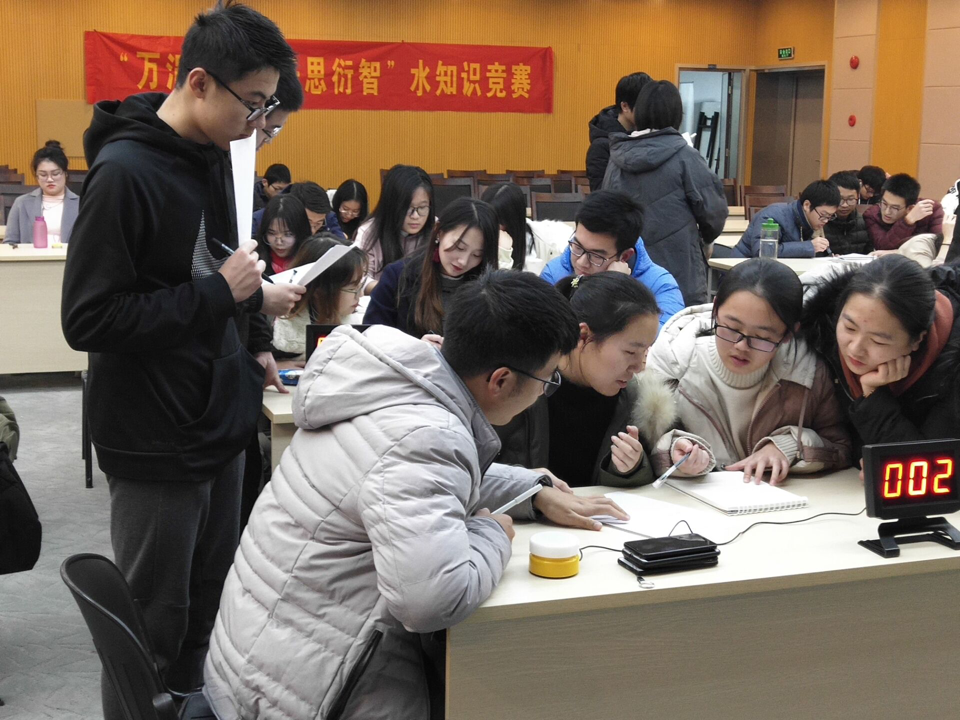2018年12月16日晚6点30分,第三届“万涓成水,千思衍智”水知识竞赛在图书馆会议室举办。来自博彩网 、大禹学院、水文水资源学院等10个学院的共50位同学参与了此次水知识竞赛。
