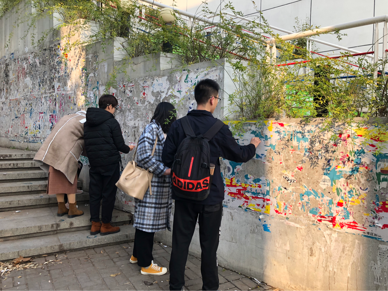 在这样一个寒冷的冬日,同学们自愿放弃了周末的休闲时光,在六食堂附近集合。众所周知,六、七食堂和新食堂附近的墙上常常被贴上各种各样的校外小广告,极大地影响了校园的整洁程度,有碍于学校“文明校园”称号的保持。因此,同学们此次便对这些广告进行整理和撕除。