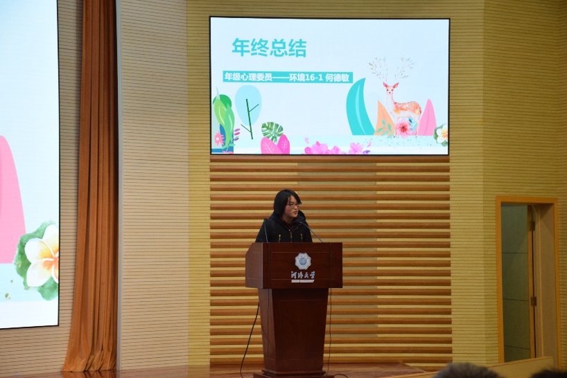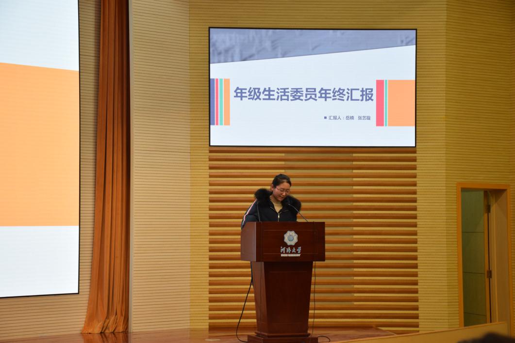 (左图为年级团支书李婉逸同学进行汇报,右图为年级生活委员岳楠进行年终汇报)