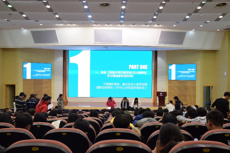年级大会的第一项内容是由辅导员亲自发放《博彩网-电竞博彩网 2016级学生情况家长告知书》,全体同学轮流上台领取。发放告知书是为了家长能更好地了解同学们在校学习情况,以及让同学们意识到自己还有哪些不足之处。