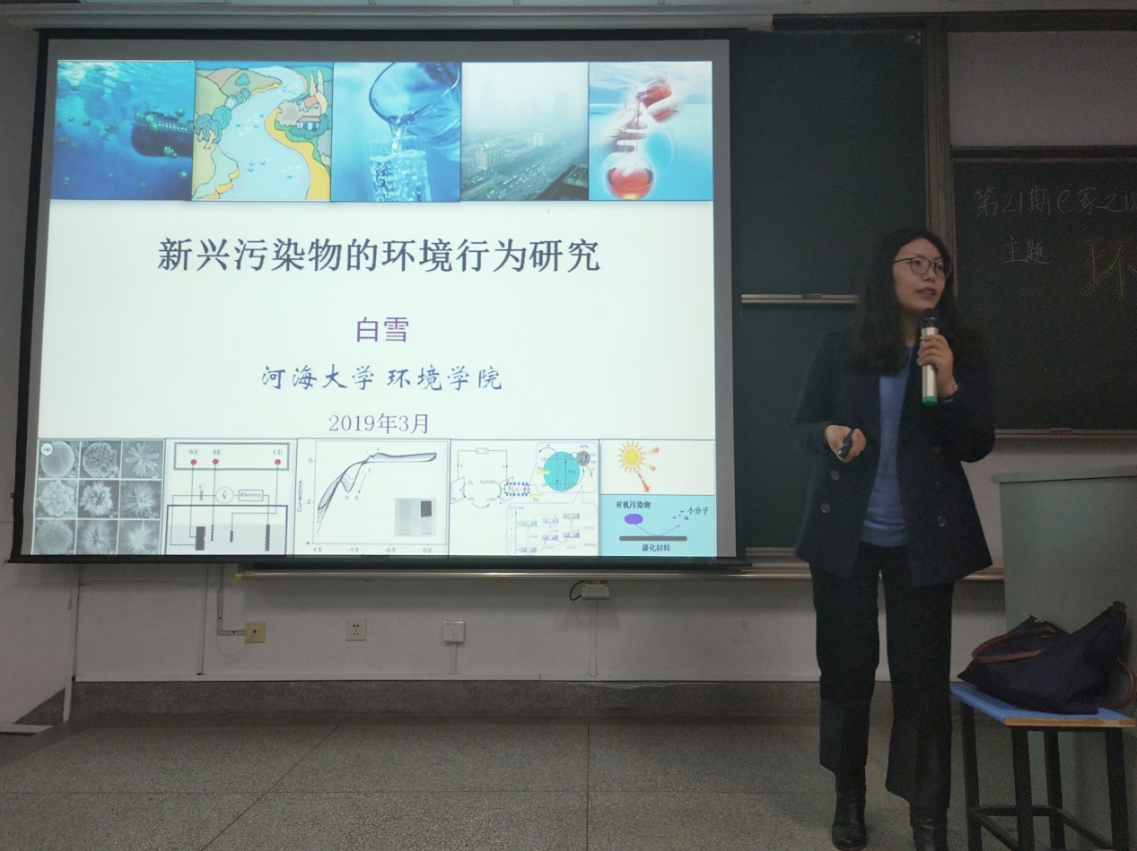 2019年3月30日晚18:30,由博彩网 科学技术协会举办的第二十一期E家之谈——新兴污染物的环境行为研究交流在致用楼101教室成功举办。本次讲座的主讲人为博彩网 教授白雪。