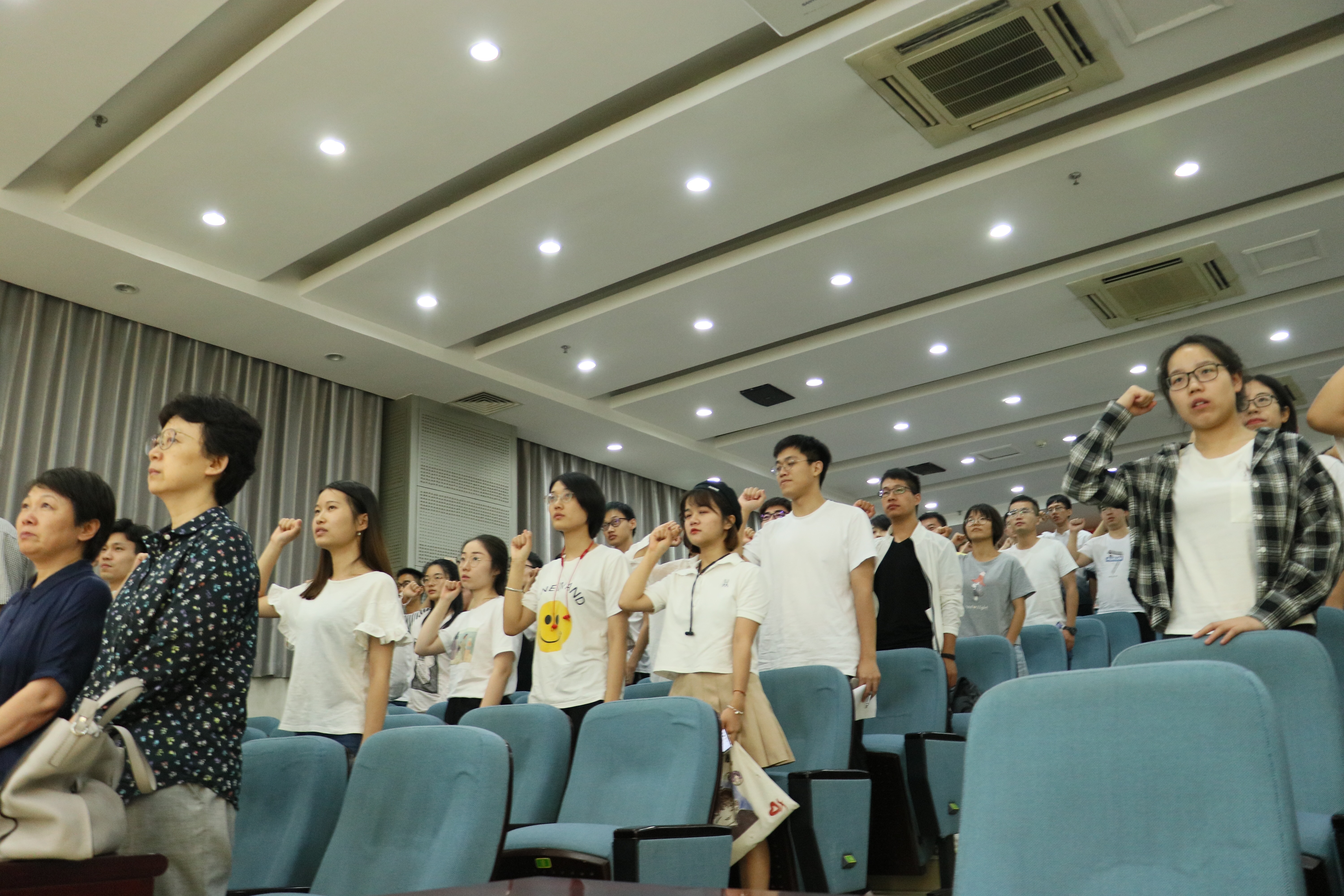 典礼伊始,王沛芳院长亲切地向同学们介绍了学院的历史发展以及学院在机构设置、师资队伍、科研平台、国际交流、人才培养等方面取得的成果。她对新同学提出了学而且有获及重视身体健康,规范学术行为,勇于直面挫折的三点寄语。随后在院党委书记笪学军的带领下,全体学生举右手握拳,做恪守学术道德宣誓。