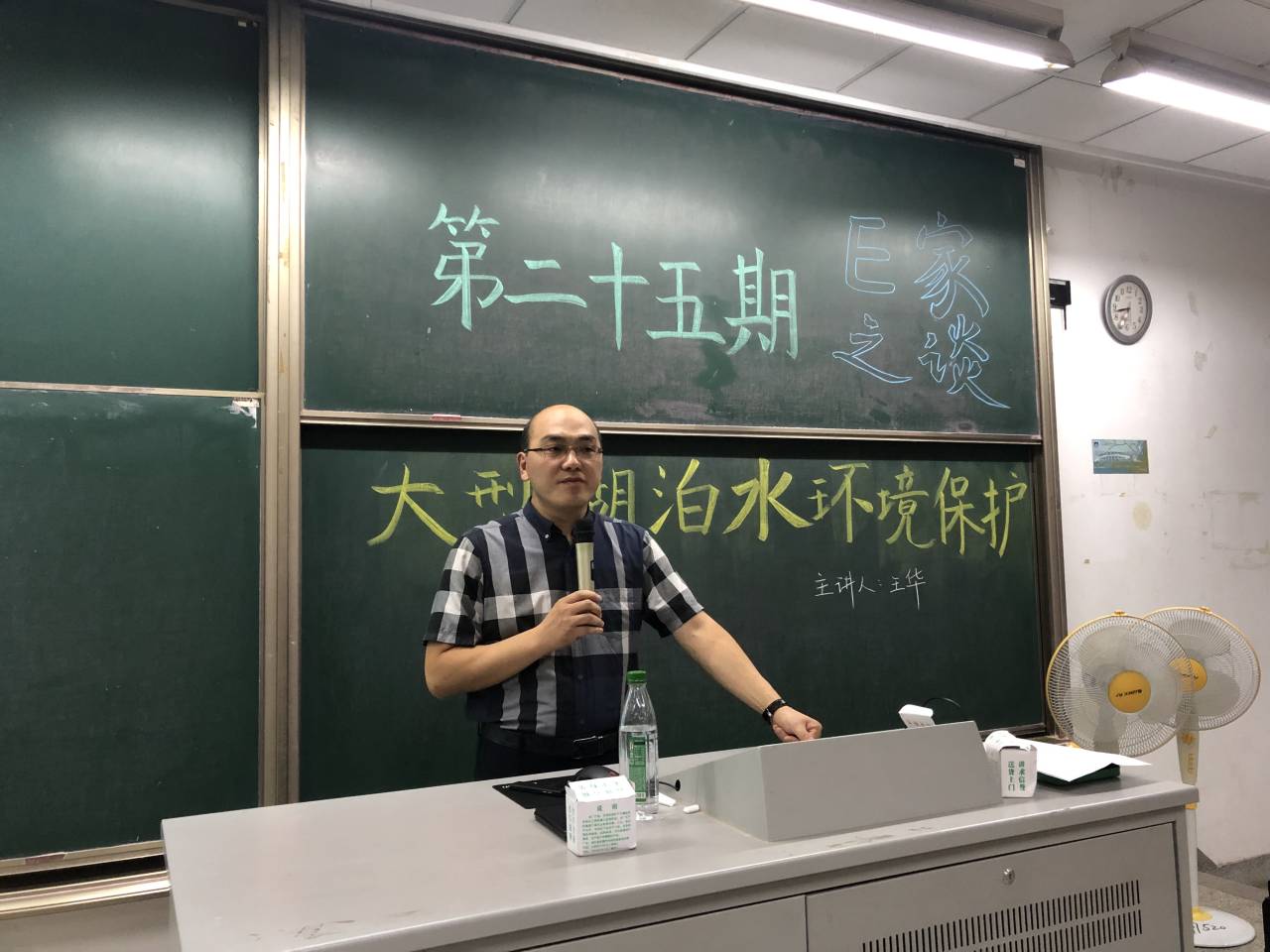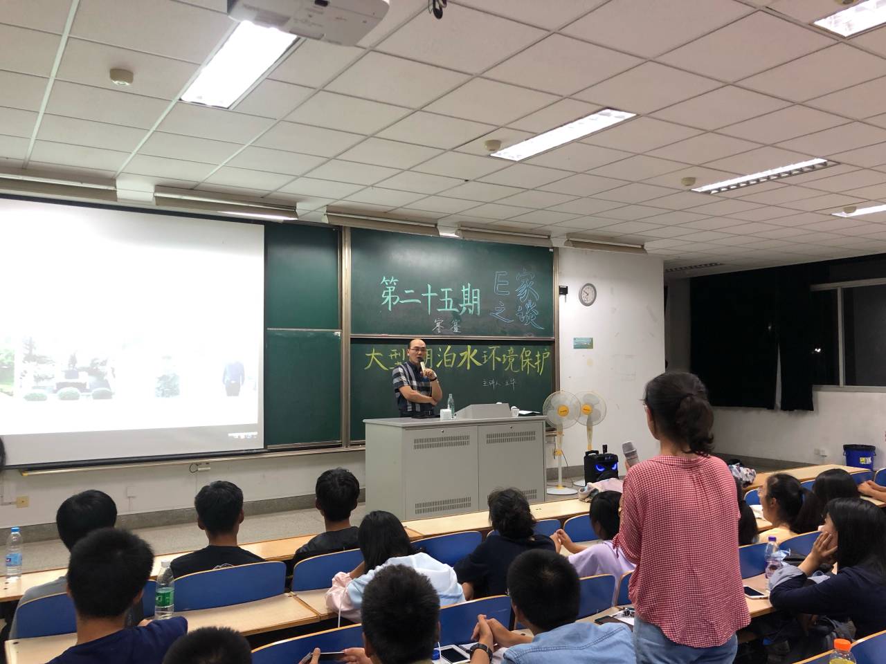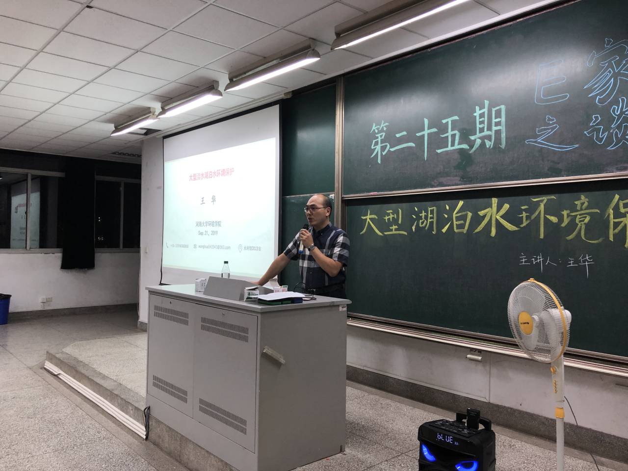2019年9月21日晚上6:30,博彩网 学生科学技术学会邀请河海大学环境科学与工程博士生导师王华教授在致用楼101举办了第二十五期E家之谈“大型湖泊水环境保护”讲座。