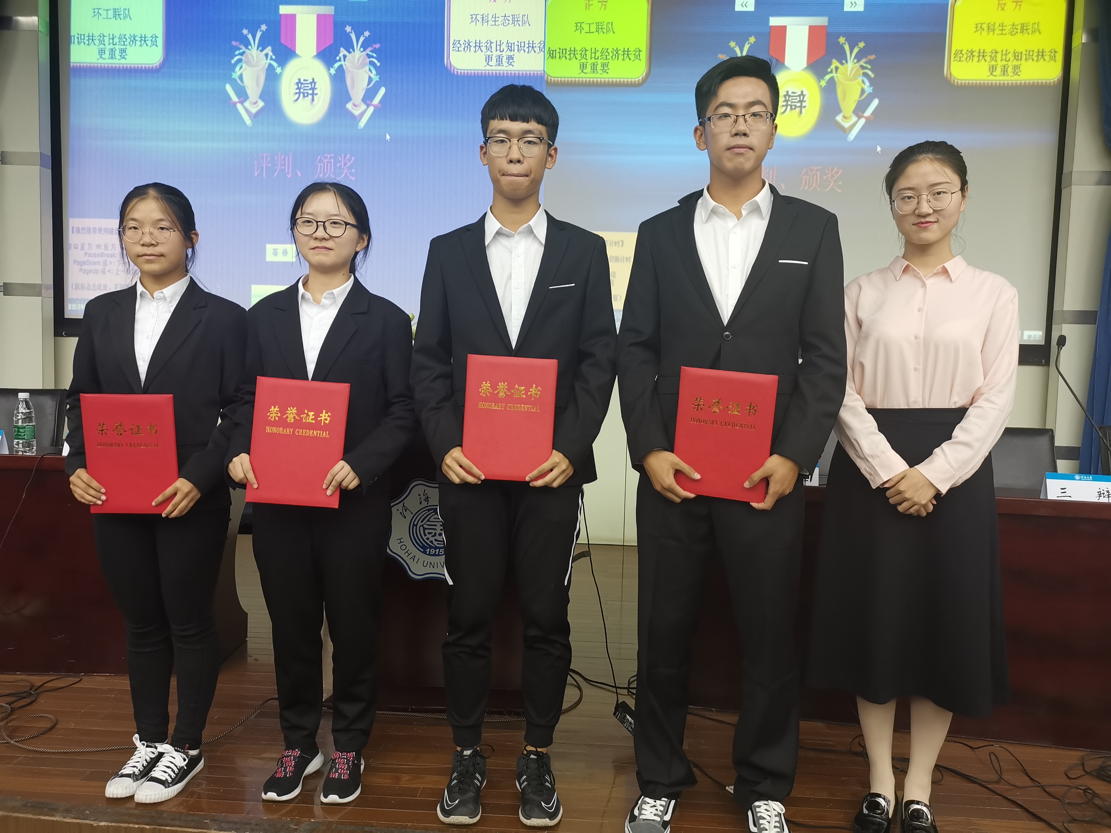 短暂休息之后,全场期待的冠军争夺赛也展开帷幕。正方首先就“知识扶贫能从根本上解决贫困问题”这一论点展开叙述,然后层层深入,阐释自己的观点-知识扶贫更重要。反方也不甘示弱,就资源倾斜及我国国情等方面进行辩驳。一番激烈的较量之后,张子巍学长针对辩题本身及双方表现的优缺点进行了详细的点评与指导。最终主席宣布,正方环工联队凭借其优秀的辩论能力及团队协作摘得桂冠,反方则获得亚军。同时,正方四辩以其从容的风度获得了“最具风度辩手”,反方四辩则以其出色的辩论能力及发言获得了“最佳辩手”称号。