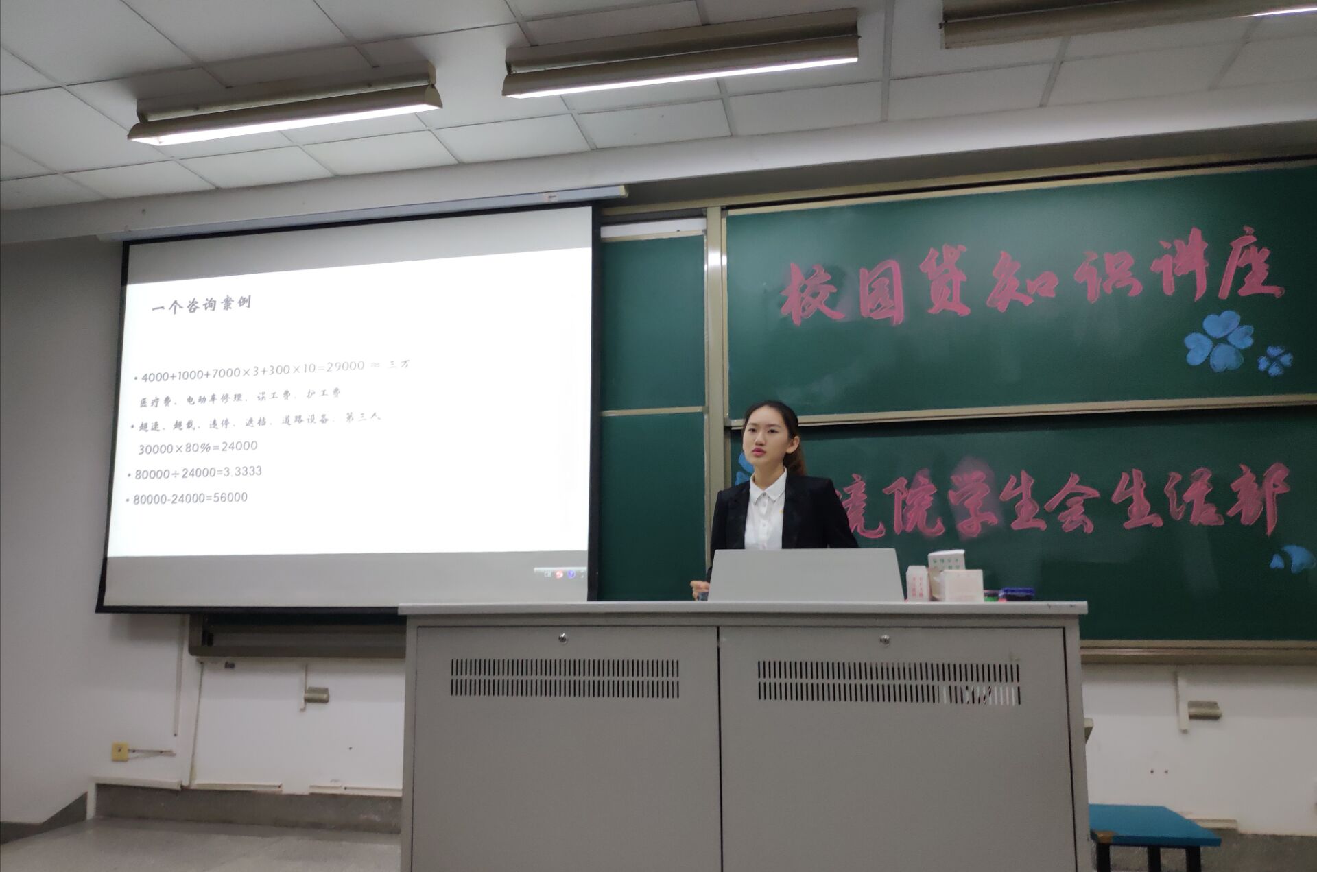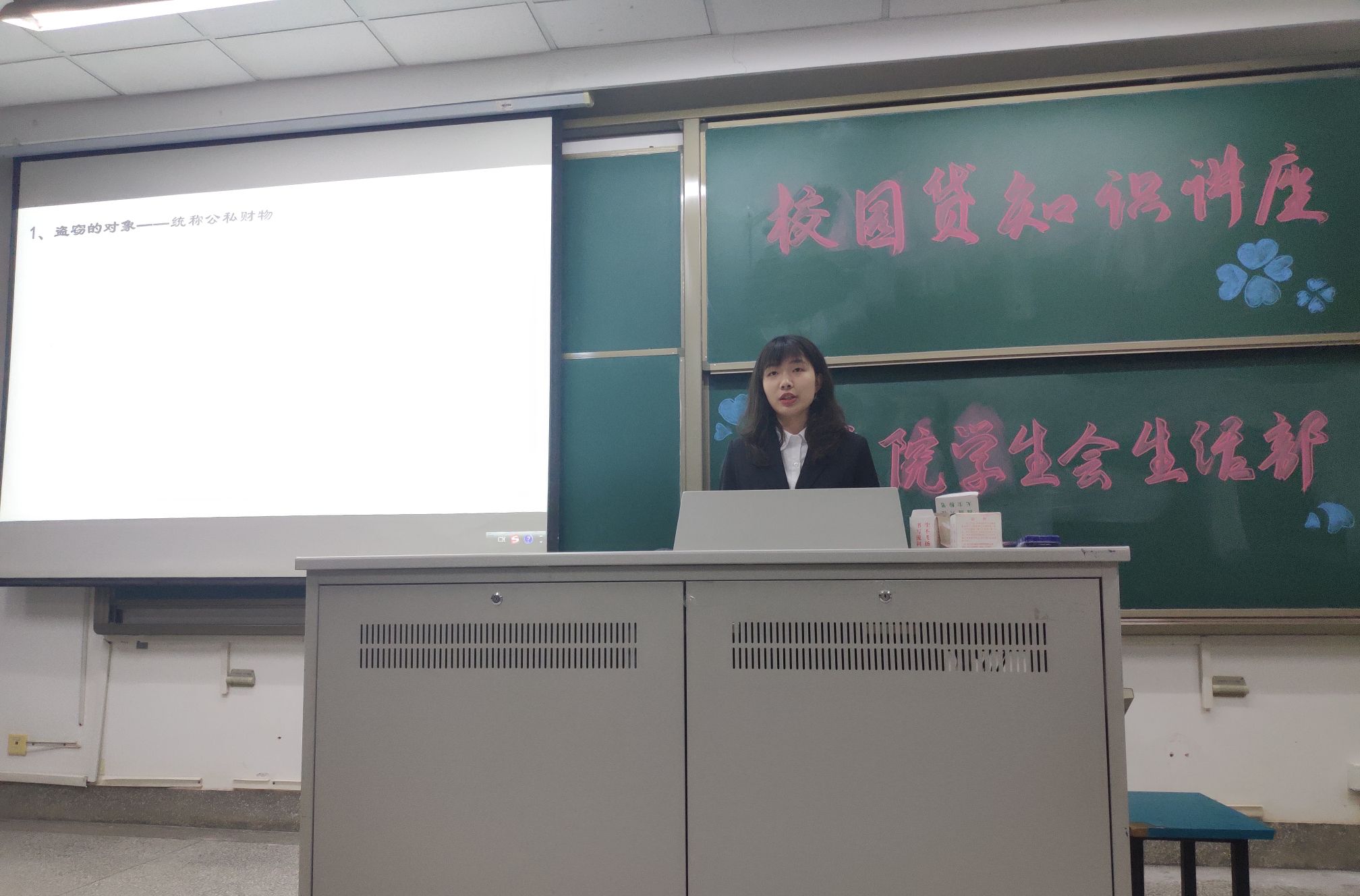 活动开始,主持人夏新淼简单介绍了活动流程。随后,第一位主讲人张庆萌通过一个案例让我们认识到法律知识的重要性。接下来同学们一起观看了一个校园贷的真实案例,从而认识到校园贷的危害性。