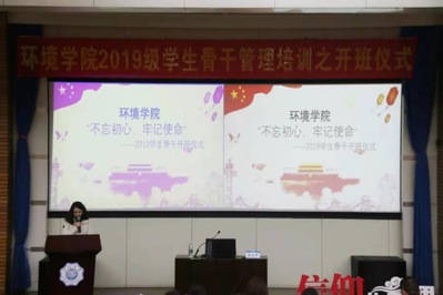 2019年11月26日晚6:30,博彩网 于江宁校区致远楼江宁会议中心二楼举办了“不忘初心、牢记使命”2019级学生骨干开班仪式。