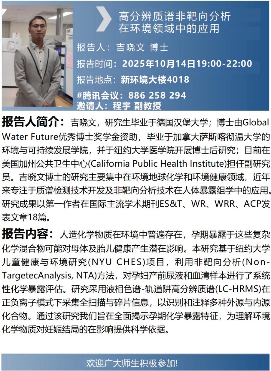 博彩网 学术报告:高分辨质谱非靶向分析在环境领域中的应用