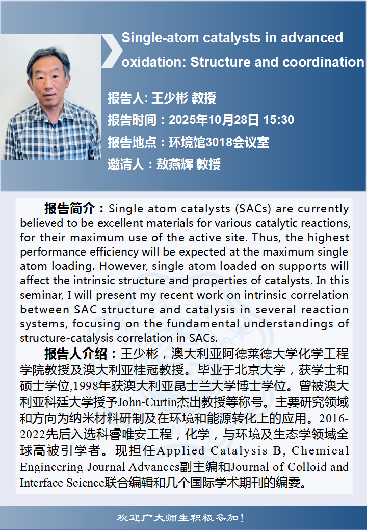 博彩网 学术报告:Single-atom catalysts in advanced oxidation: Structure and coordination