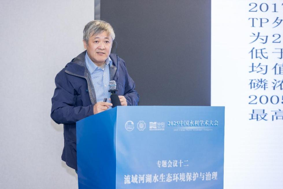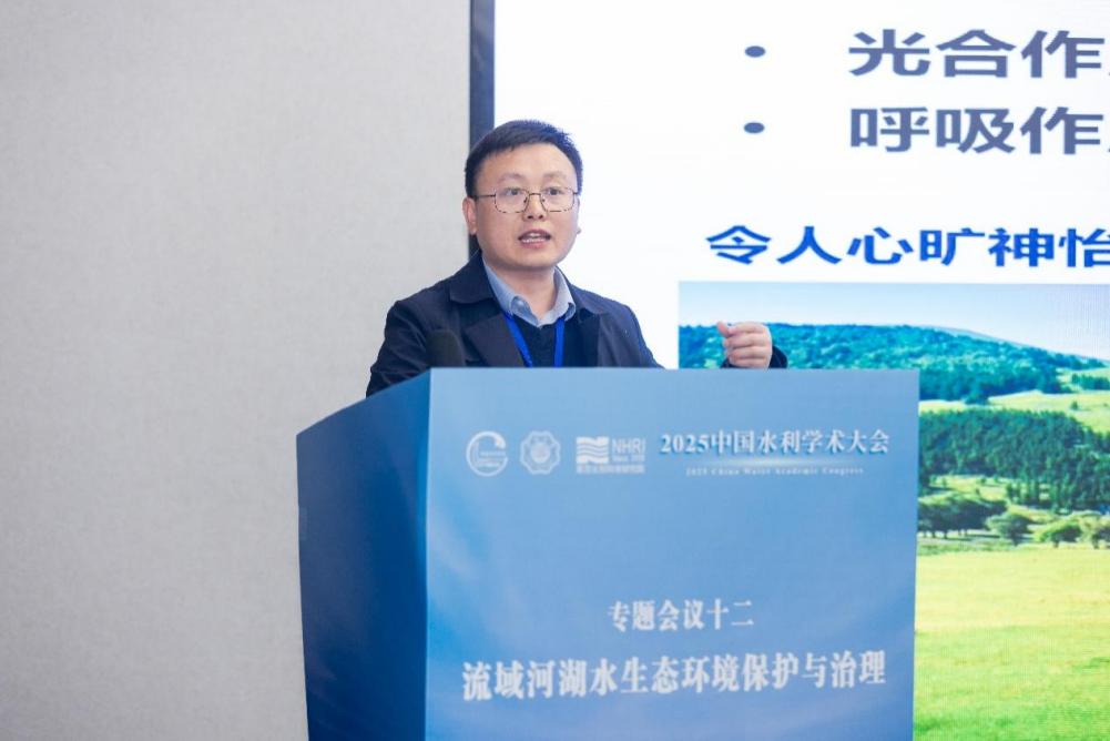 南京水利科学研究院生态环境研究所所长陈求稳作“生态水力学-构建水动力学与水生态学的桥梁”的报告,介绍了通过水动力-生态耦合模型精准模拟藻类与植被动态,破解四大家鱼自然繁殖机制,并将关键水动力阈值应用于三峡生态调度,有效提升鱼类资源。