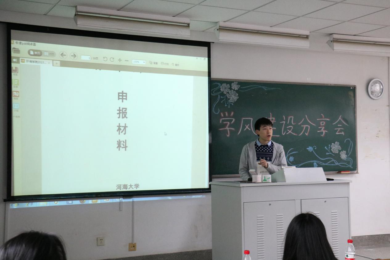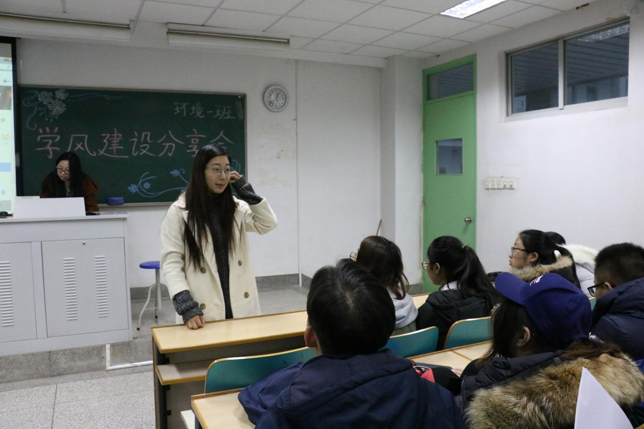学风建设分享会于致用517教室召开,本次分享会请到了2014级环境工程一班班长汪静娴和2015级给排水一班班长吴帅航作经验交流。2016级辅导员老师金意倩出席并主持本次分享会。