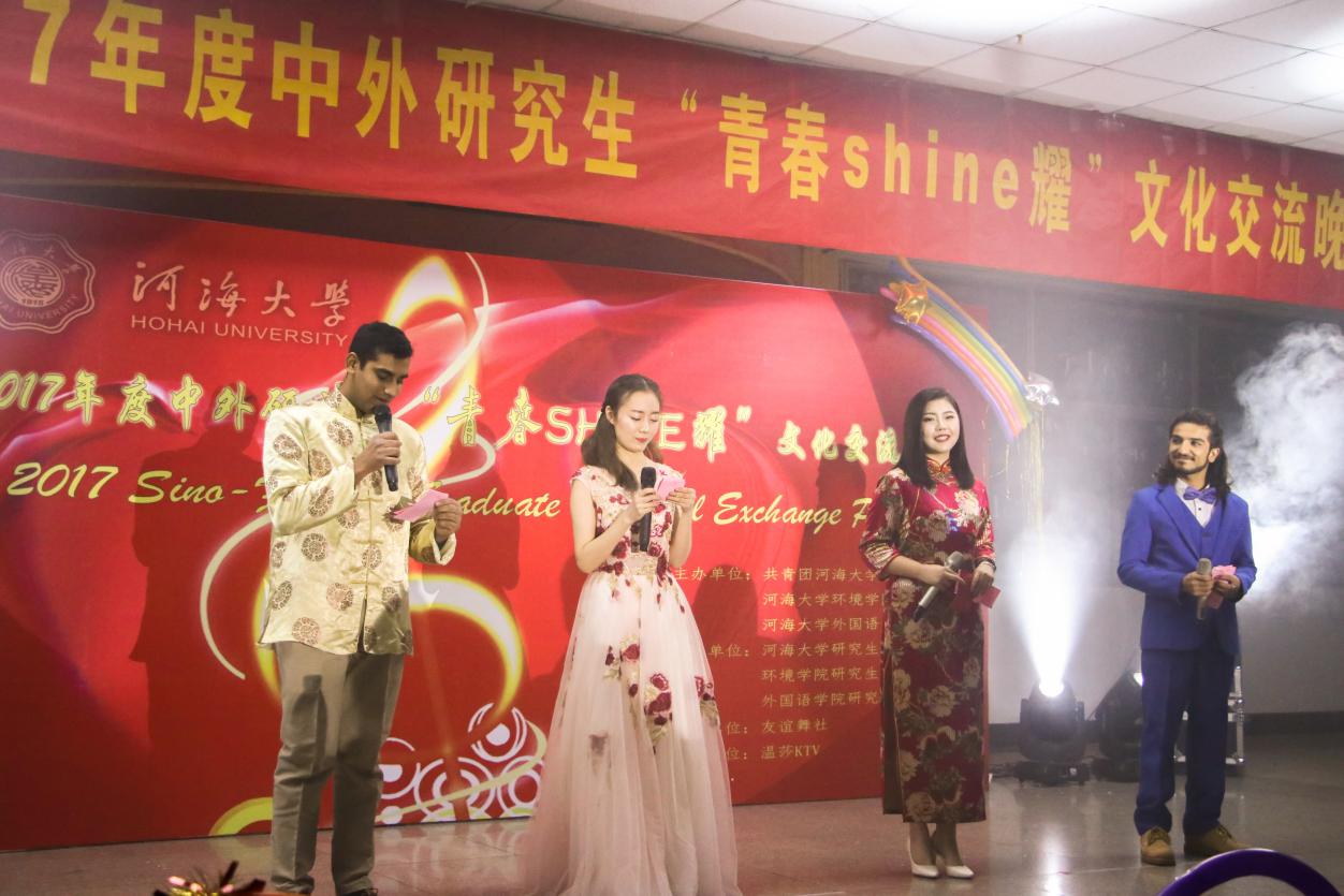 绚丽的灯光映衬着众人的欢声笑语,友情无国界,相遇即精彩,2017年12月15日晚6:30,伴随着《Stay young》的动感节奏,以“青春shine耀”为主题的中外研究生交流晚会在校本部学生城正式拉开序幕,晚会由共青团河海大学委员会、博彩网-电竞博彩网 及外国语学院联合主办。